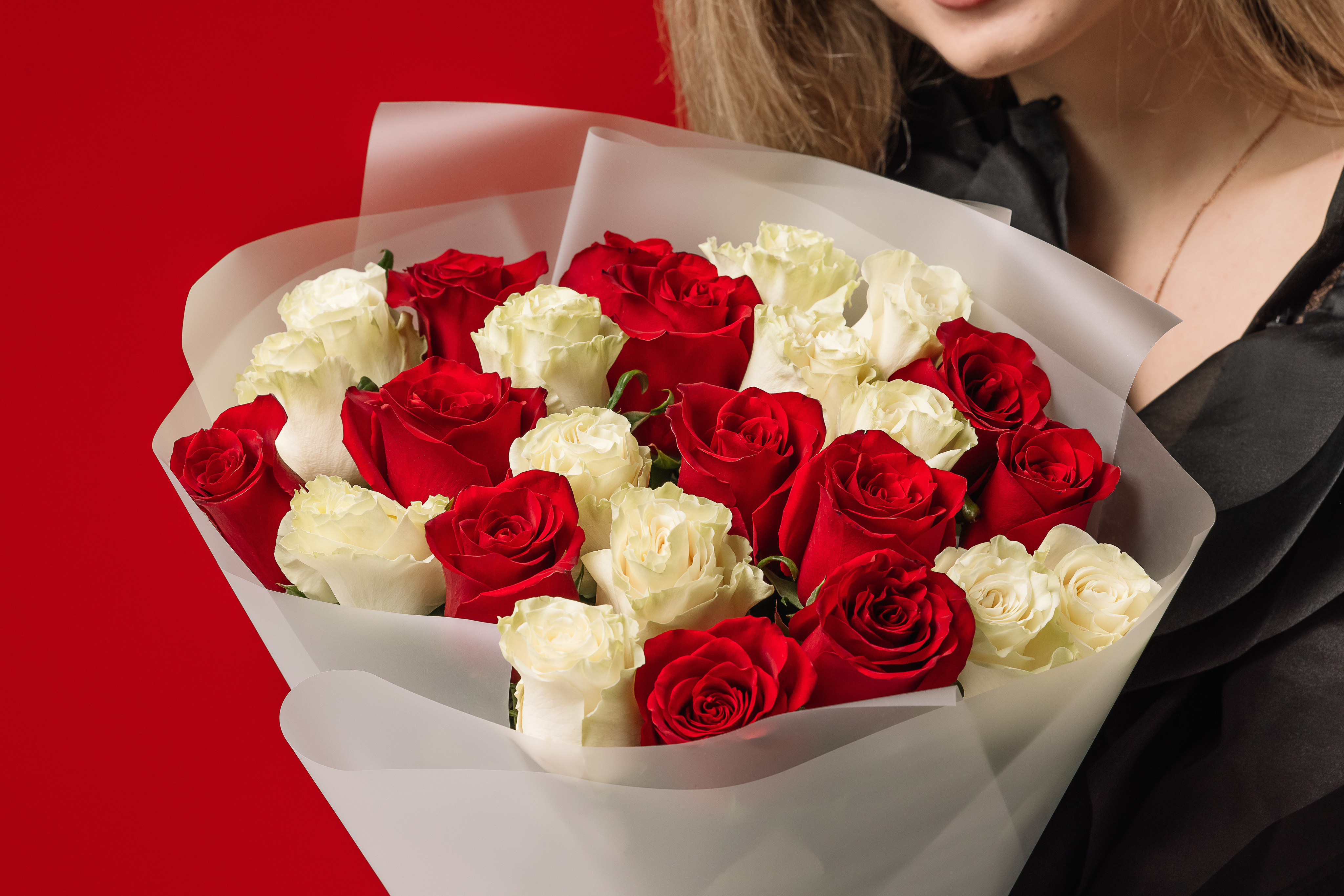 Изысканный букет из микса красной и белой Эквадорской премиальной розы поведает его получателю о Ваших горячих и искренних чувствах. Классический букет, не требующий никаких слов в дополнение.