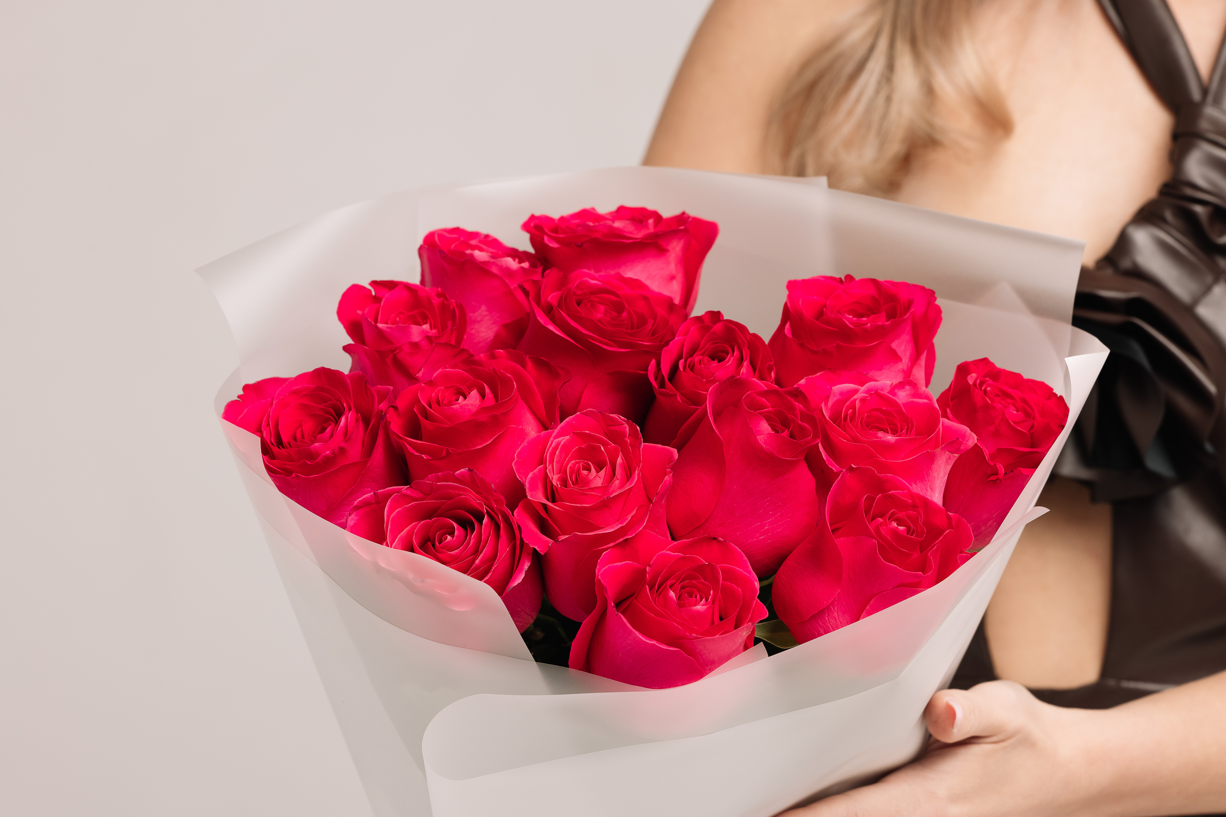15 Эквадорских роз premium яркого насыщенного розового цвета.
