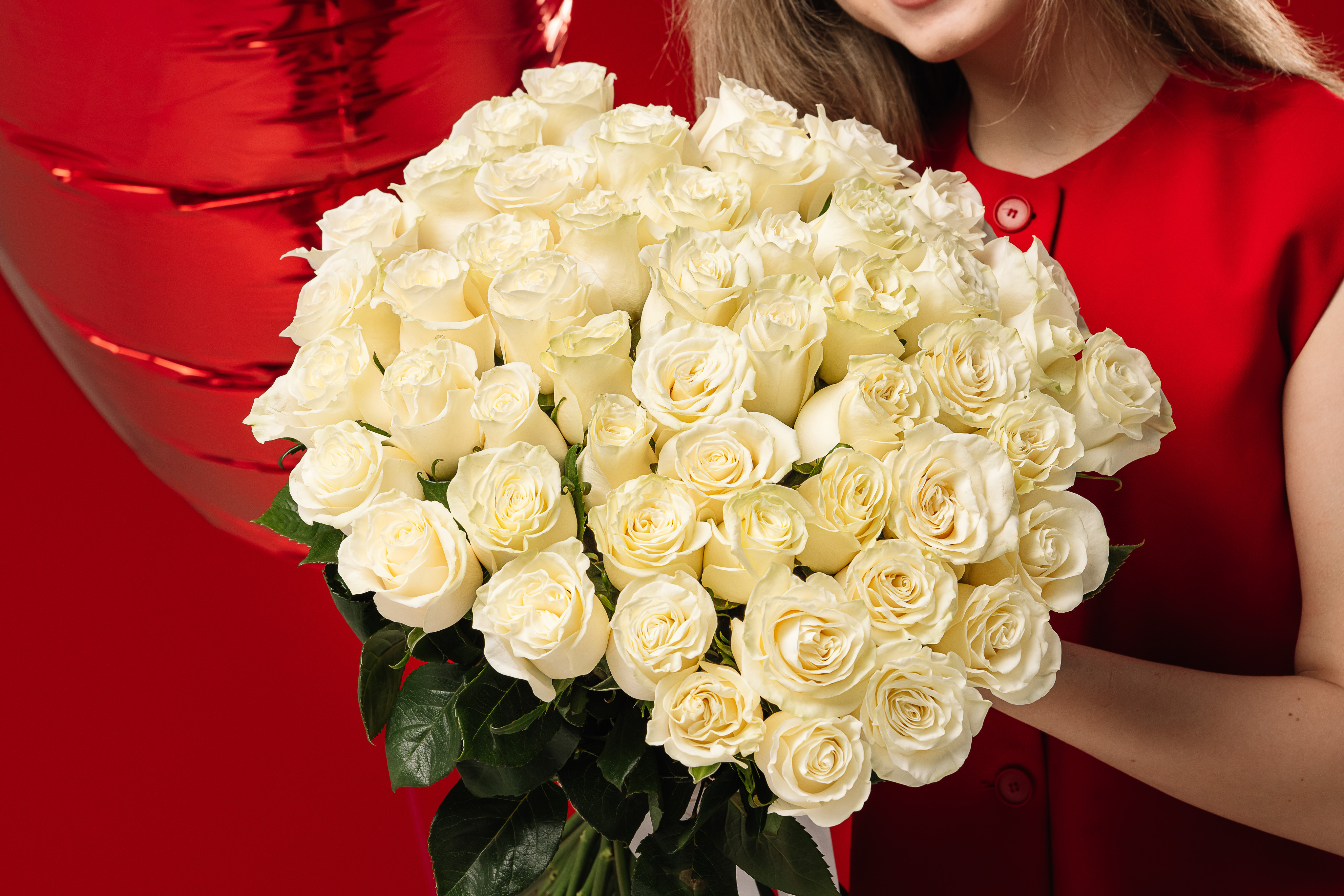 Белоснежные бутоны роз — классический символ изящества и глубины чувств. Букет белых роз говорит без слов: о чистоте намерений, искренней привязанности и уважении. Эти нежные цветы уместны в самых разных ситуациях — от романтических свиданий до торжественных церемоний.
