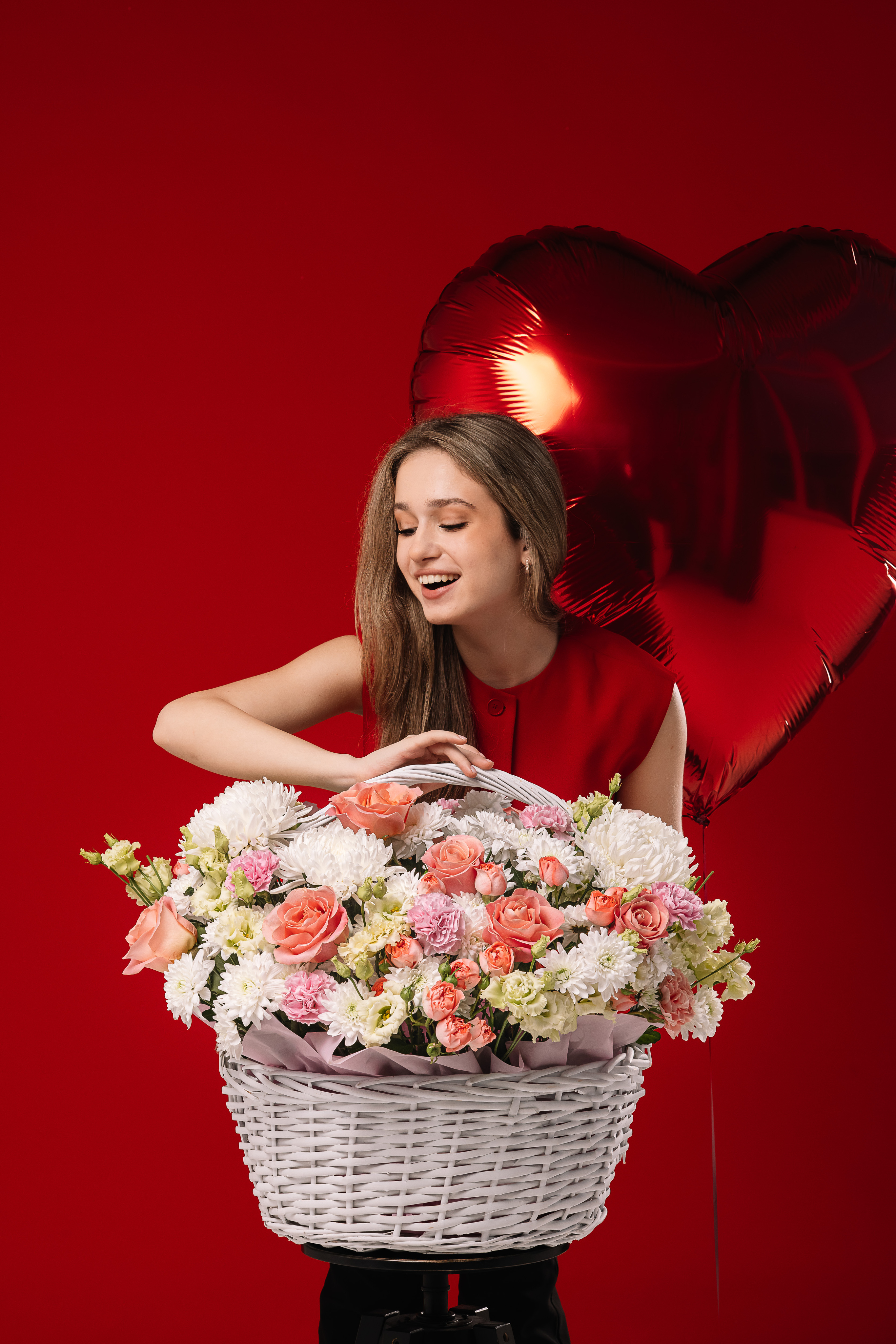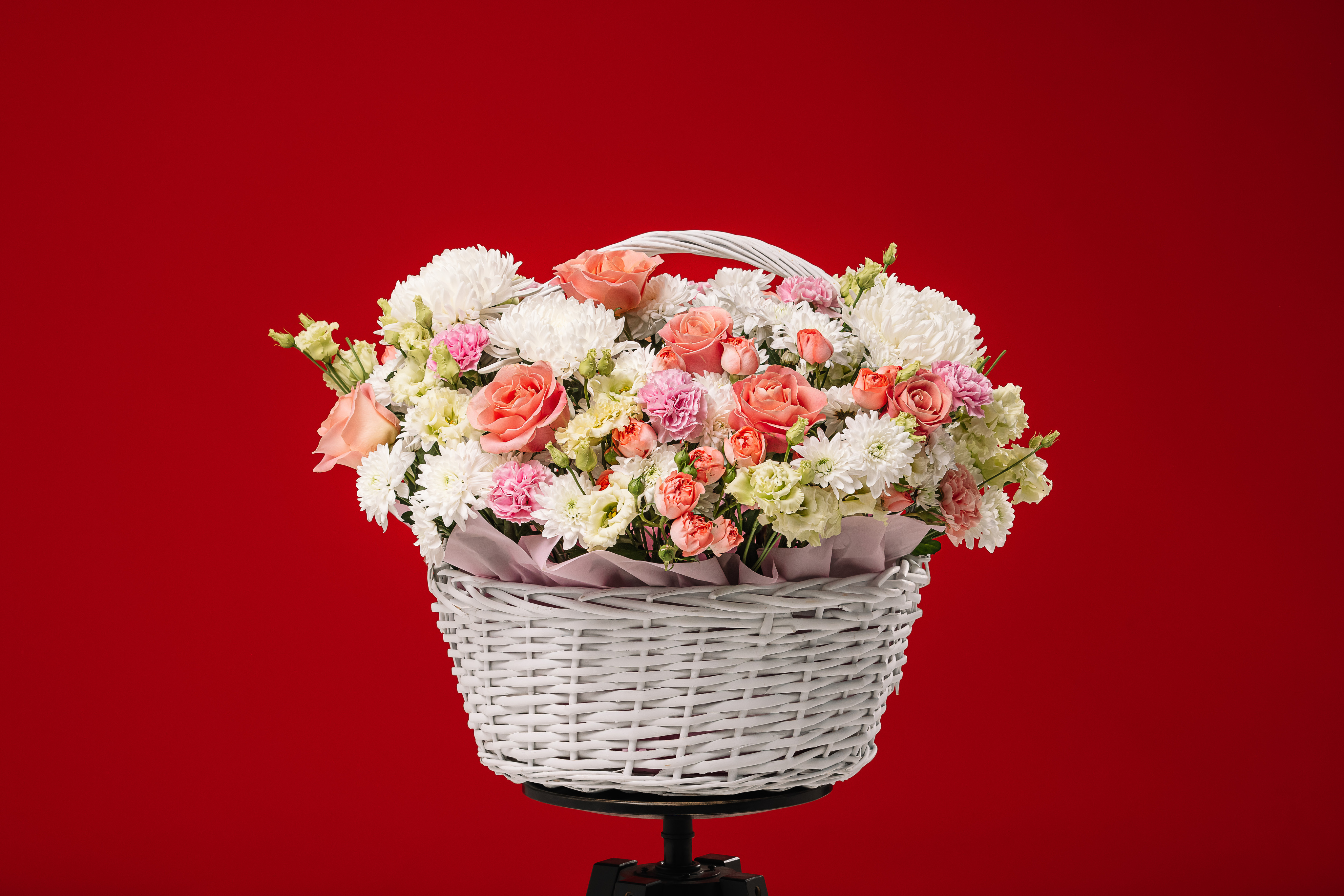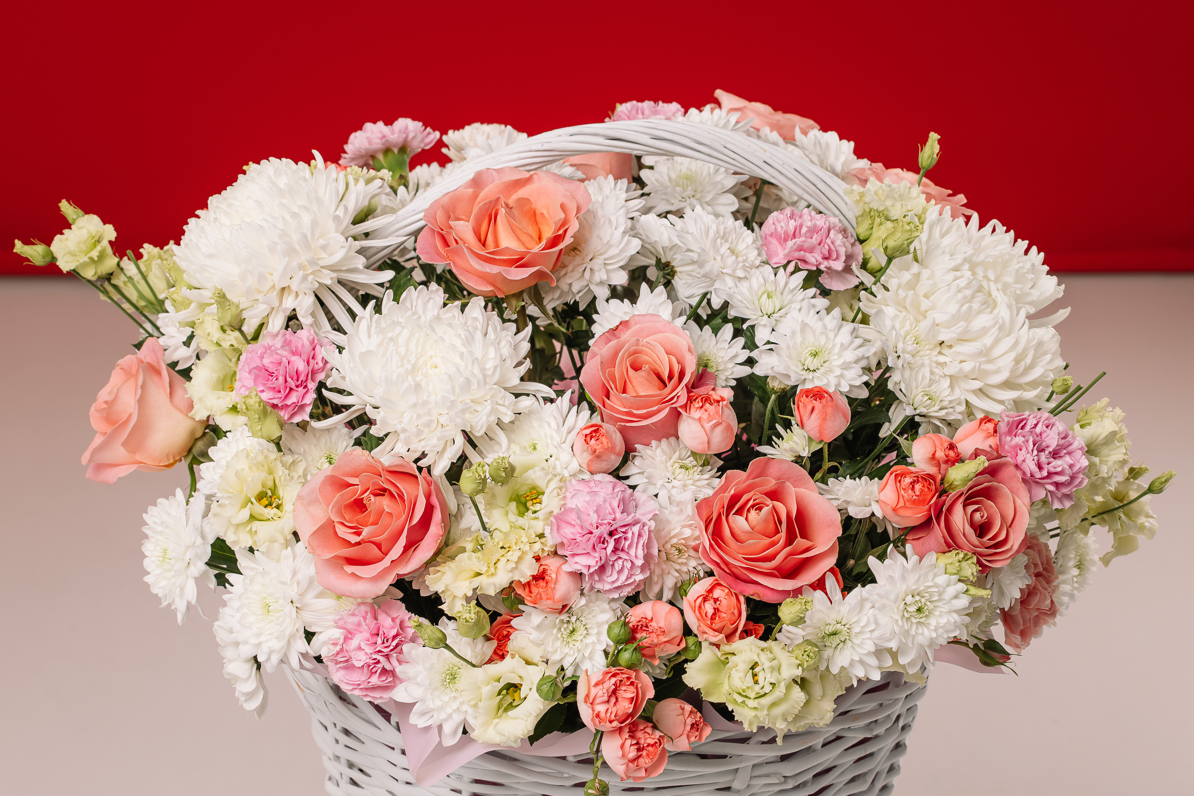 Необыкновенно красивая и нежная корзина цветов. Сочетание одноголовой элитной розы и кустовой розы пионовидного сорта, хризантемы, диантуса с ароматной эустомой — словно вы попали в райский сад. Идеальный вариант поздравления близких и любимых людей. А в прочем, вам решать кому подарить такое восхитительное чудо.