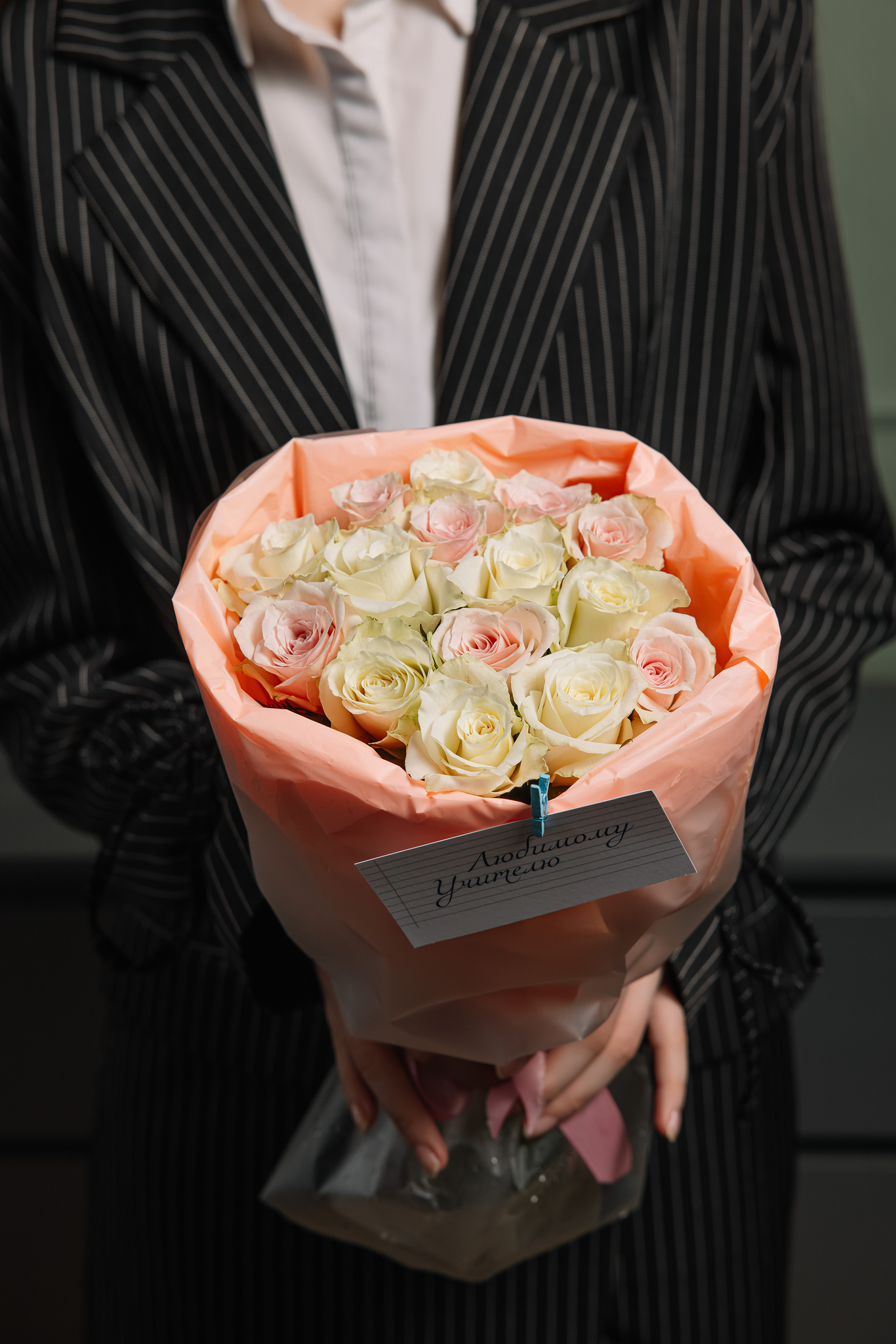 Очаровательная белая кенийская роза 15 шт. (40 см) в оформлении.