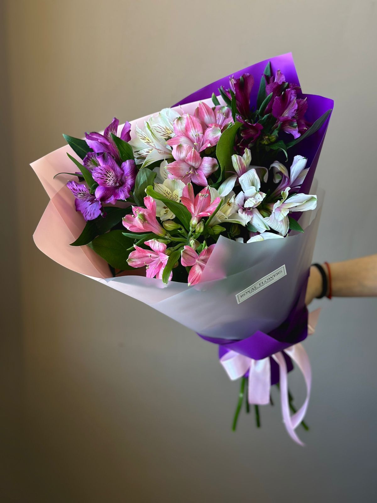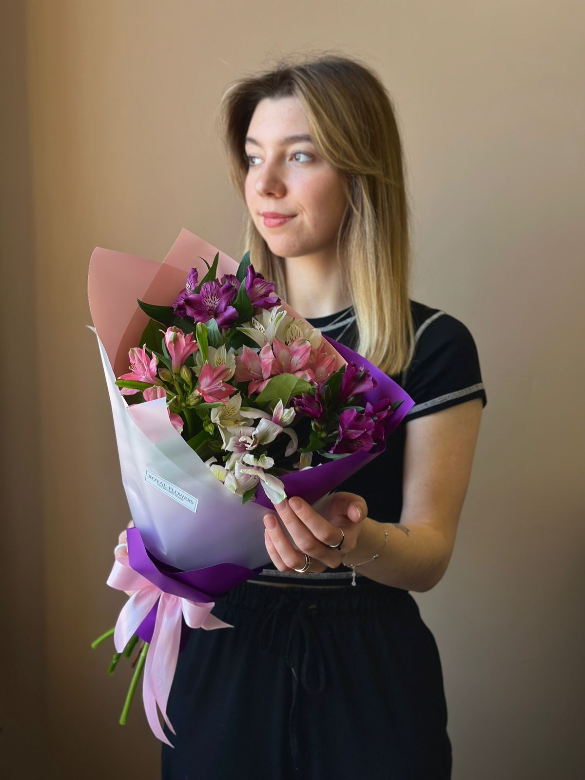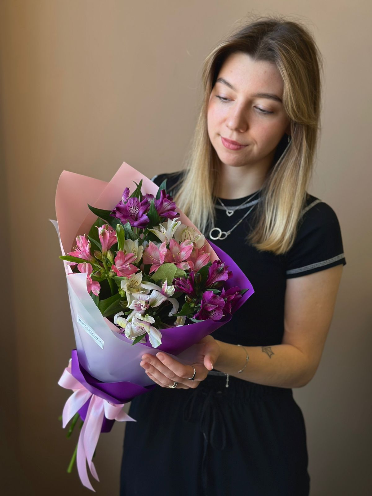 Букет оформлен в корейскую, влагостойкую пленку + атласная лента