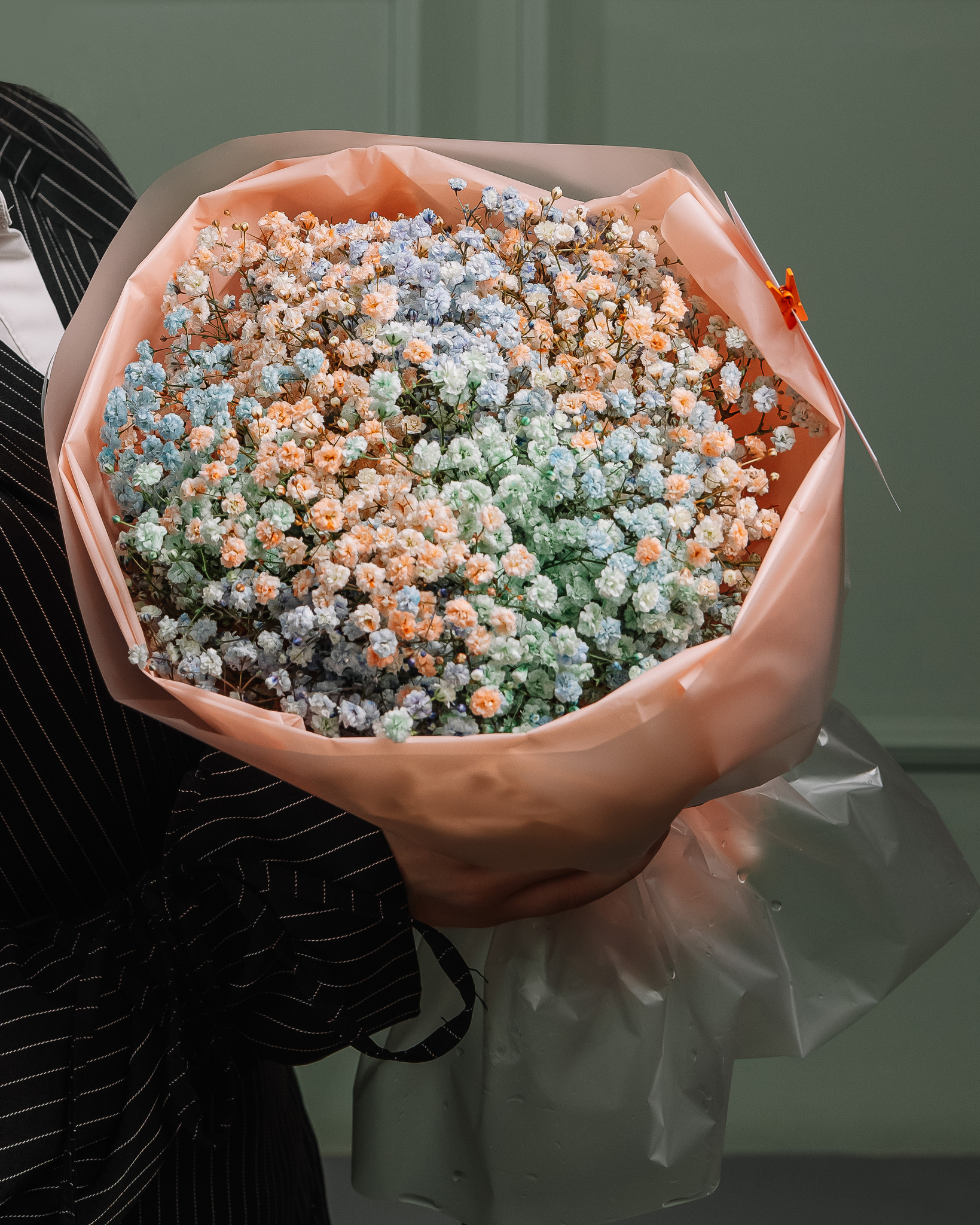 Нежные оттенки цветной гипсофилы в оформлении: Гипсофила крашеная 4 шт.