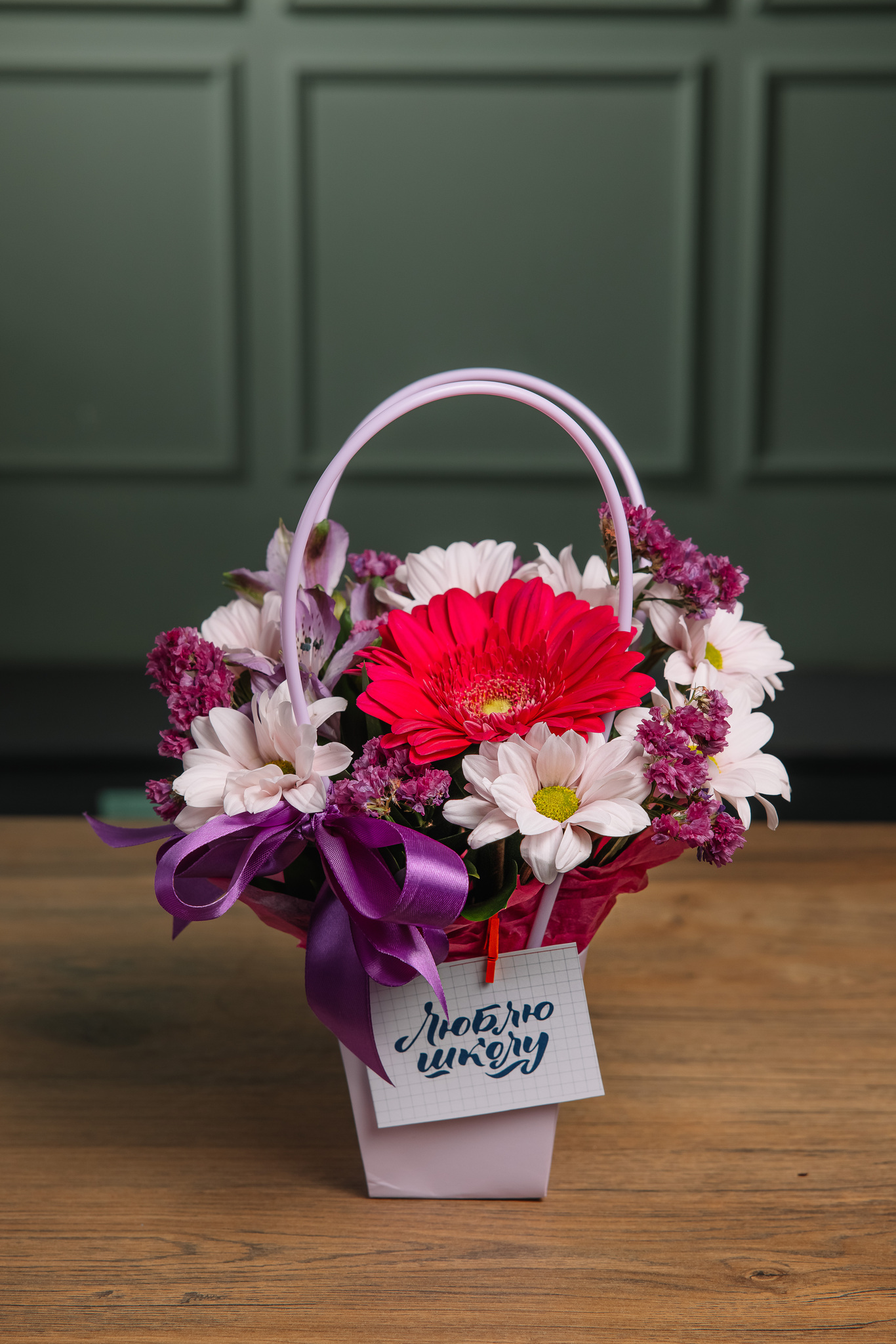 Очень стильный и современный вариант для цветочного комплимента. Удобно носить, дарить, не требует особого ухода.